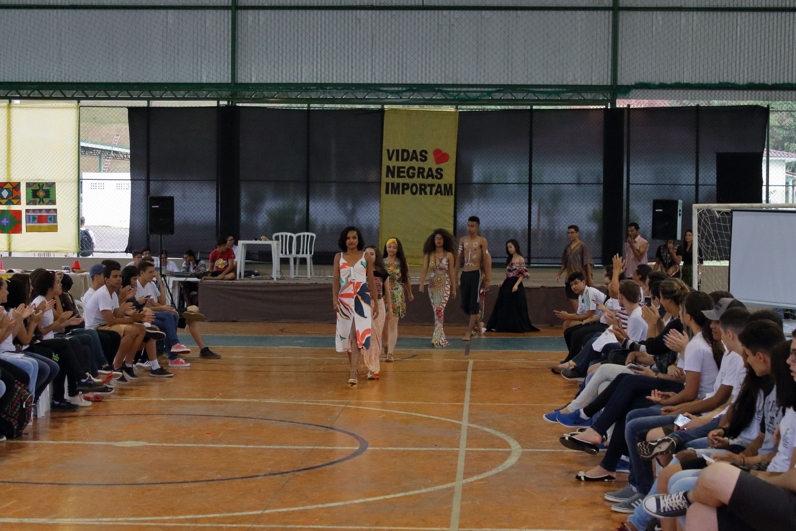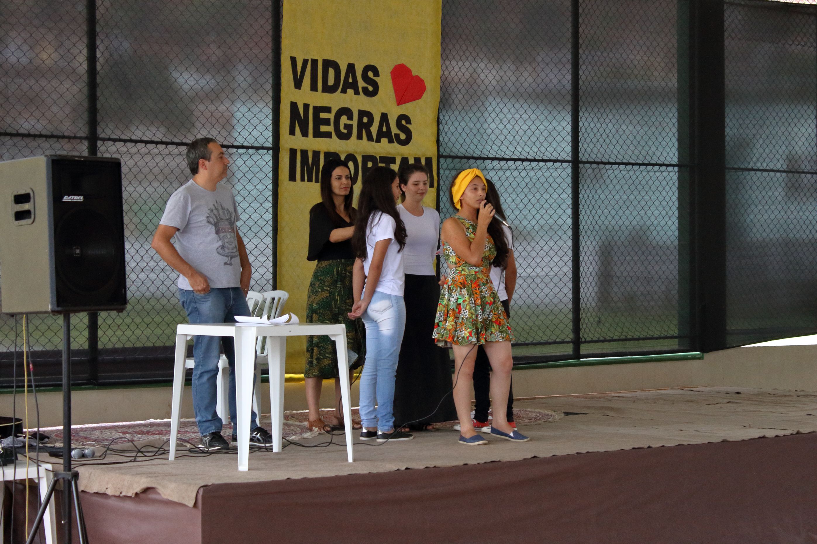 Negritude e politicas de ações afirmativas foi o tema da palestra ministrada na última Terça-feira, 21 de novembro, durante a programação alusiva a Consciência Negra. O evento foi organizado pelos servidores que compõem o Núcleo de Estudos Afro-brasileiros e Indígenas (NEABI) e teve o apoio do Núcleo de Arte Cultura (NAC). A programação também contou com exposição de pinturas afros, danças, declamação de poesias, músicas e desfile da beleza negra. Tudo produzido pelos próprios alunos sob a orientação dos professores envolvidos. Além disso, houve uma oficina de turbantes ministrada por uma especialista em moda africana. O evento buscou valorizar a cultura negra e levantar reflexões acerca do racismo estrutural e institucional presente no Brasil ainda na atualidade. Um dos destaques do dia foi a exibição de pratos típicos da culinária afro-brasileira ( fufu, acarajé, quibebe, feijoada, dentre outros) que objetivou demonstrar a influência da cultura africana na nossa alimentação.